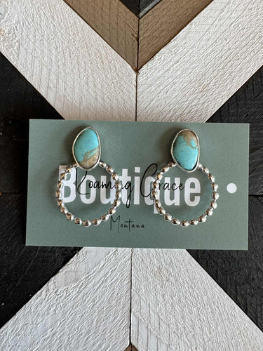 Handmade Turquoise & Sterling Silver Hoop Earrings More Matrix