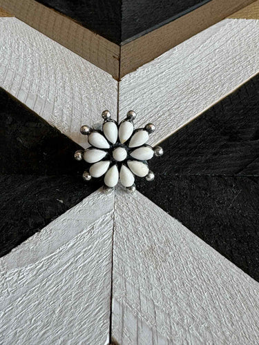 Handmade Sterling Silver White Buffalo Turquoise Adjustable Ring with Signed