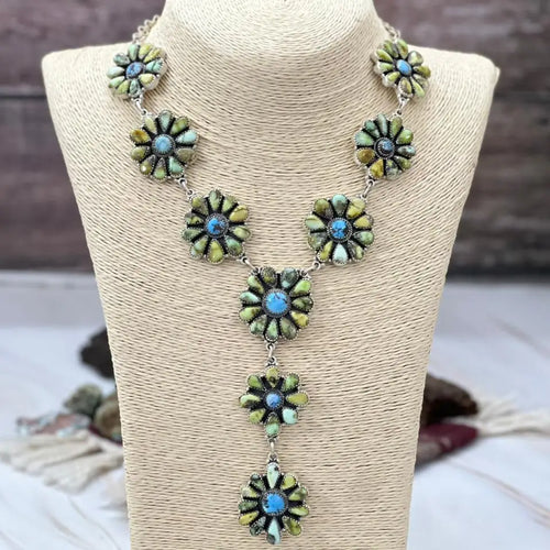 Handmade Sterling Silver & Turquoise Cluster Choker Set
