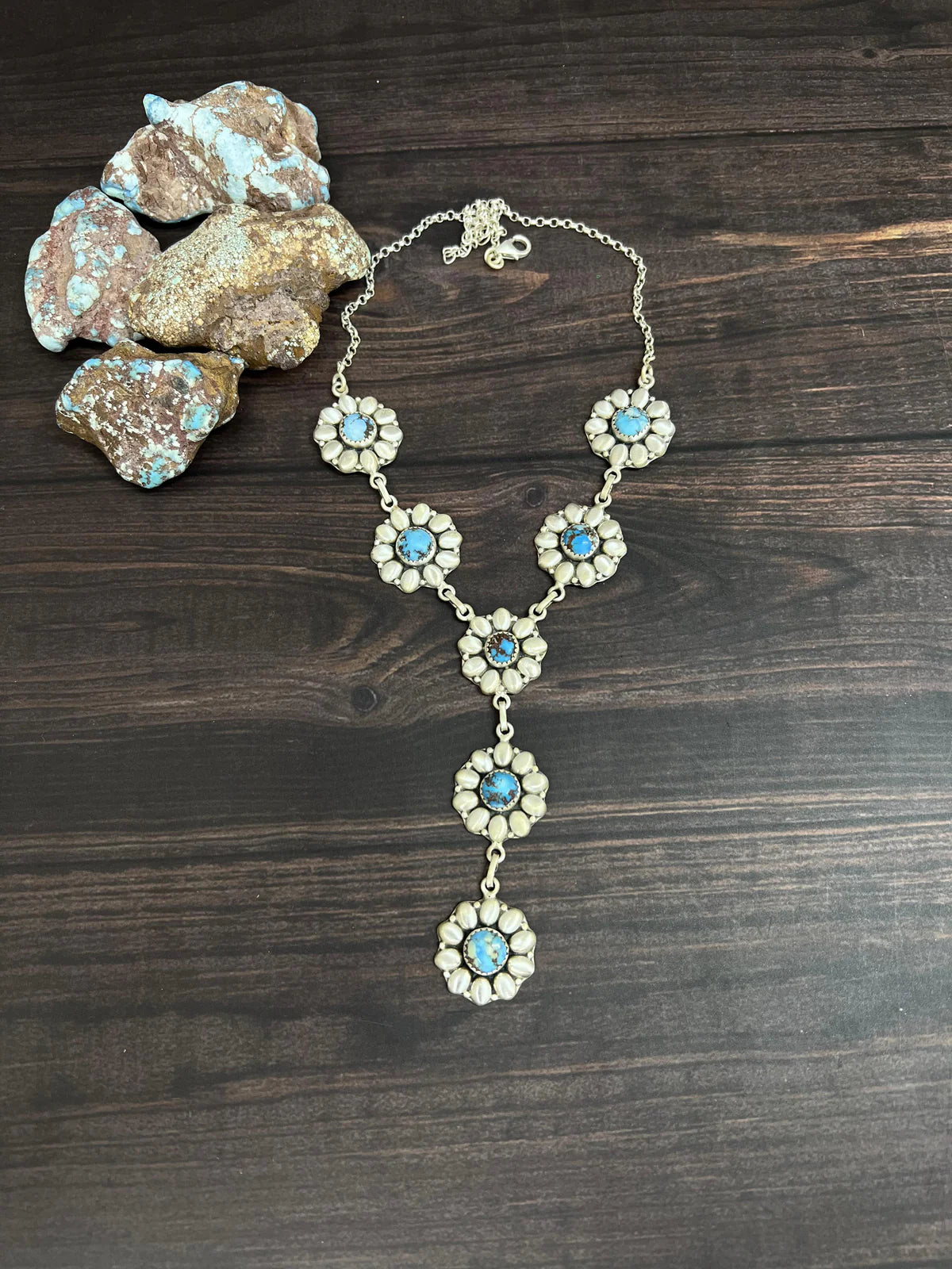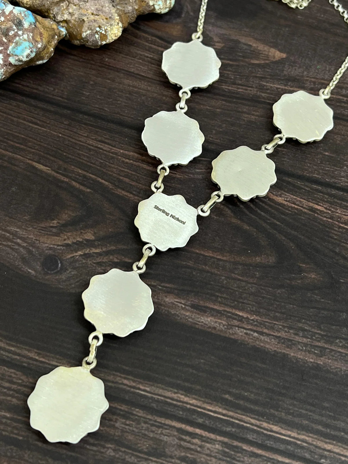 Such gorgeous craftsmanship! Sterling Silver Golden Hills TurquoiseNecklace Measures Length 16+2" Extension, Width 7/8" with an additional drop of 3 1/8".
