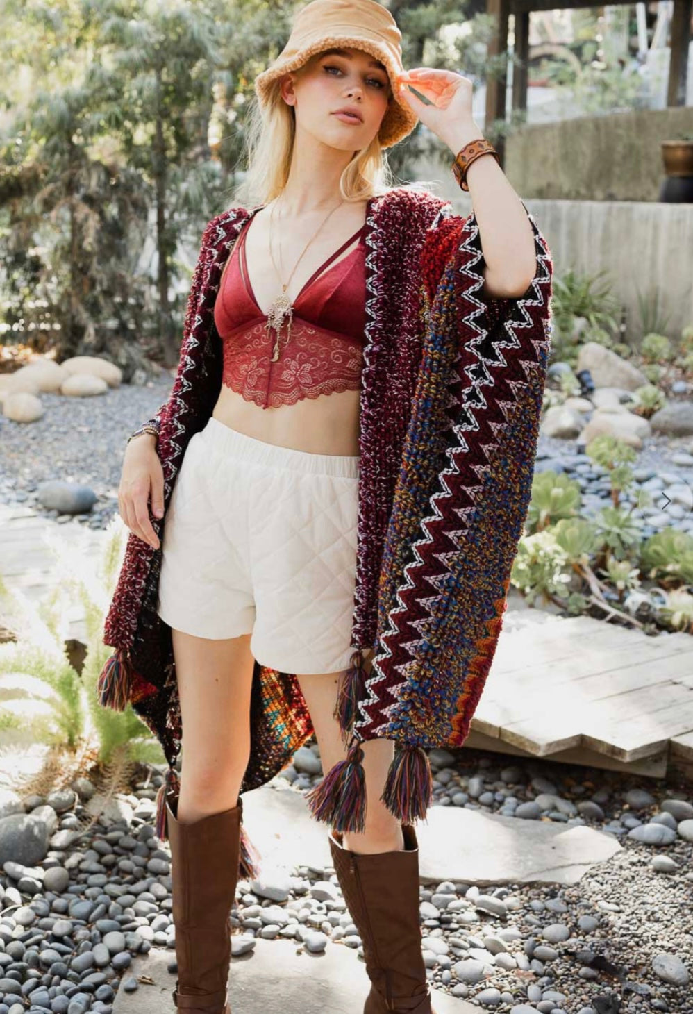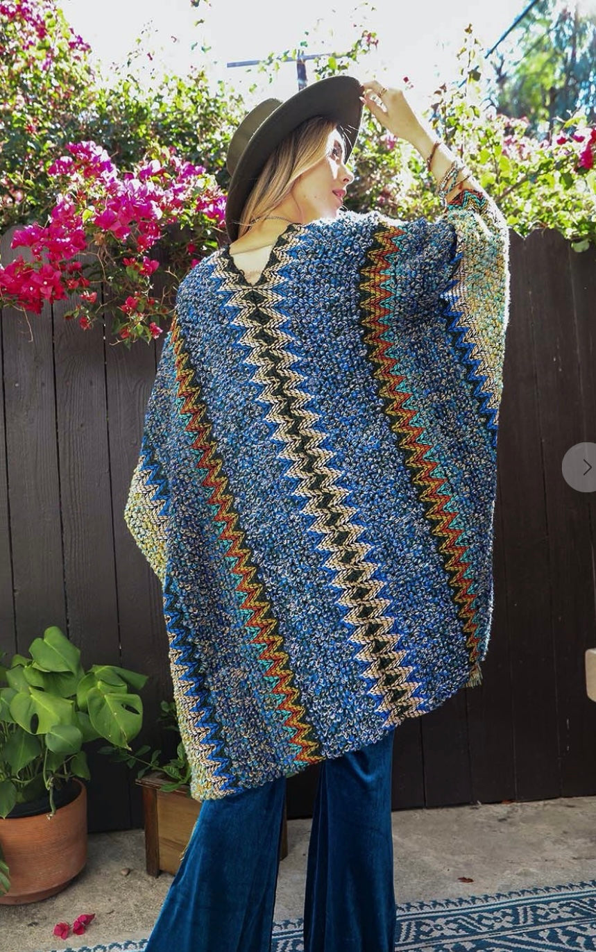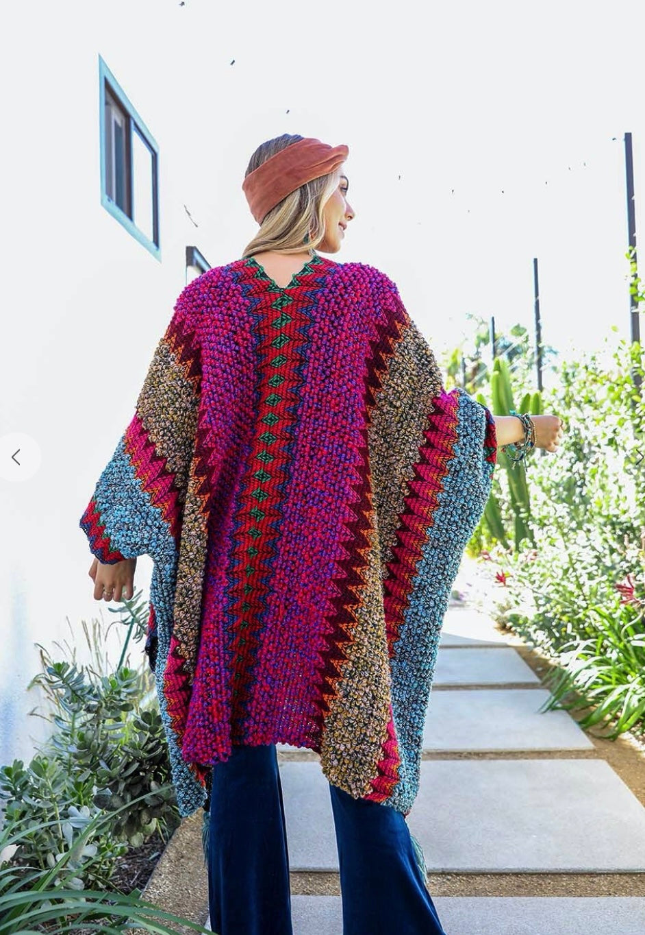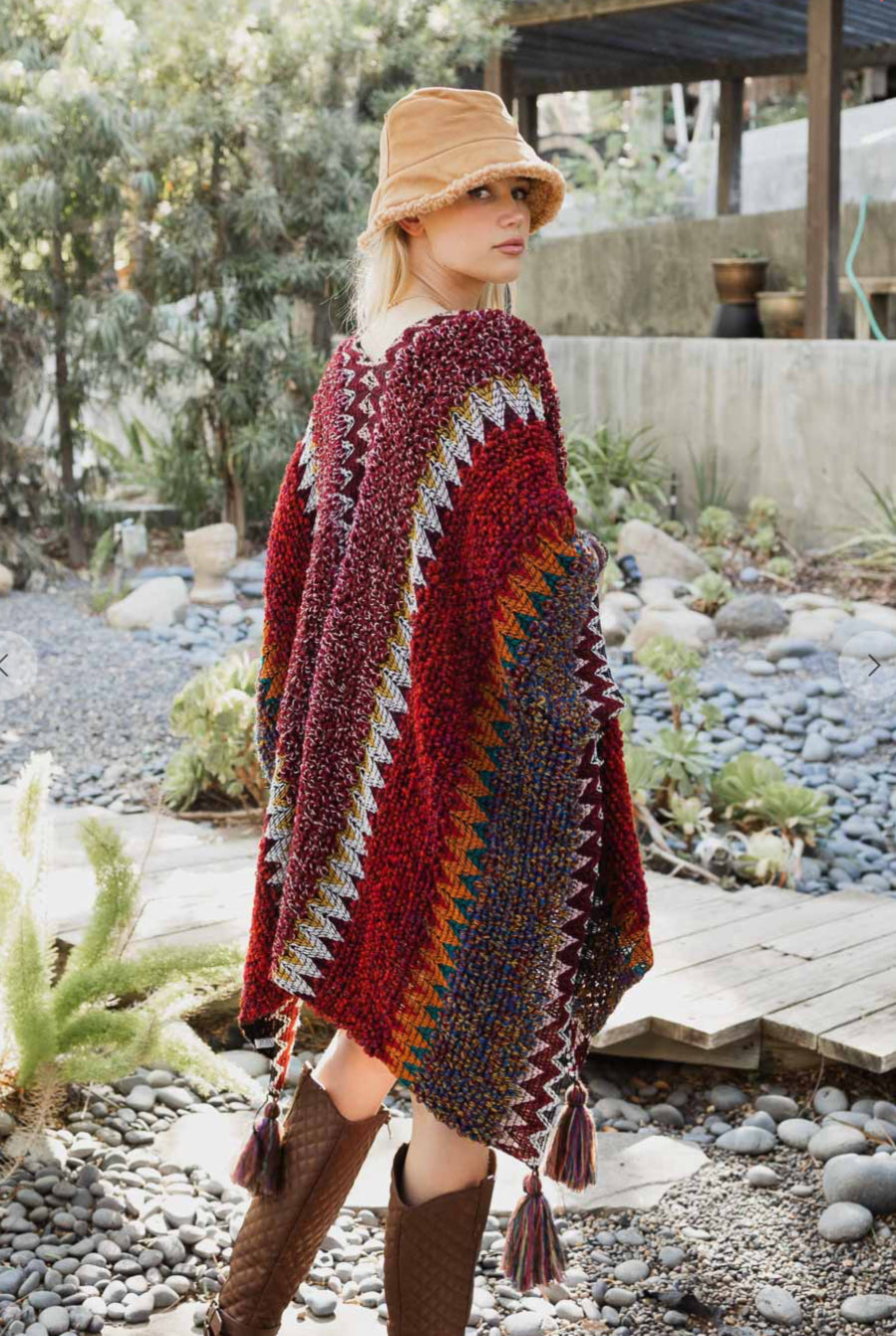 Meet your new style companion-the Colorful Crochet Patterned Ruana. This isn't just another piece of clothing it's a celebration of vibrant hues and intricate crochet patterns. Crafted with love and attention to detail, this ruana offers both comfort and a visual feast for the eyes. Whether you're heading to a casual brunch, an art gallery, or even a beach bonfire, this ruana is versatile enough to complement any setting. Ships 8 days from order date One size Size: 42" x 30"