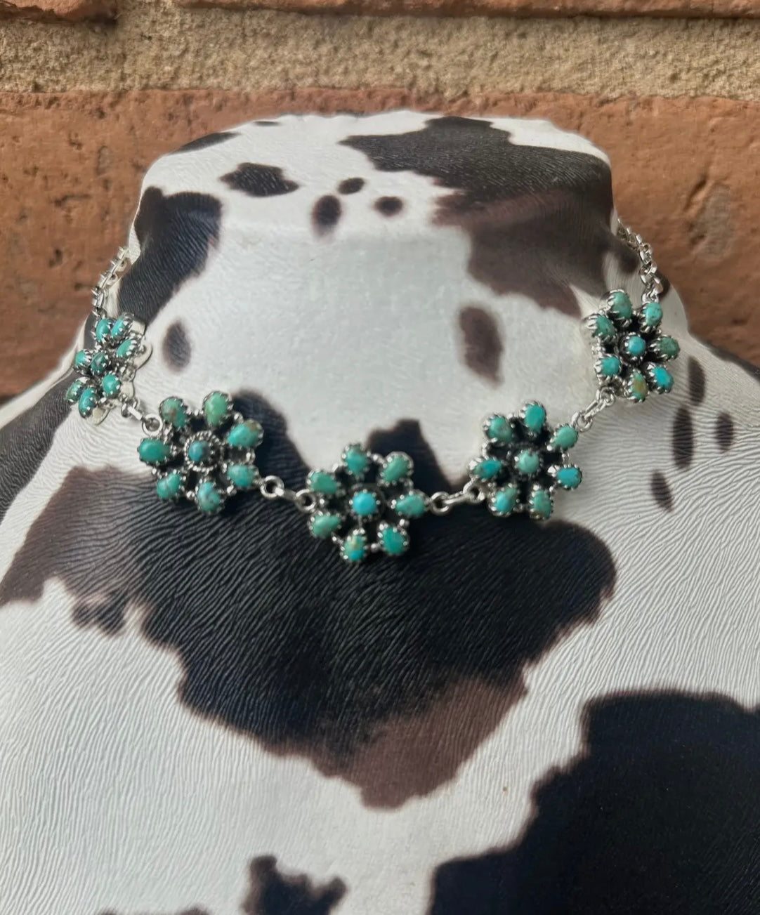 Beautiful Handmade Turquoise and Sterling Silver Choker Necklace.