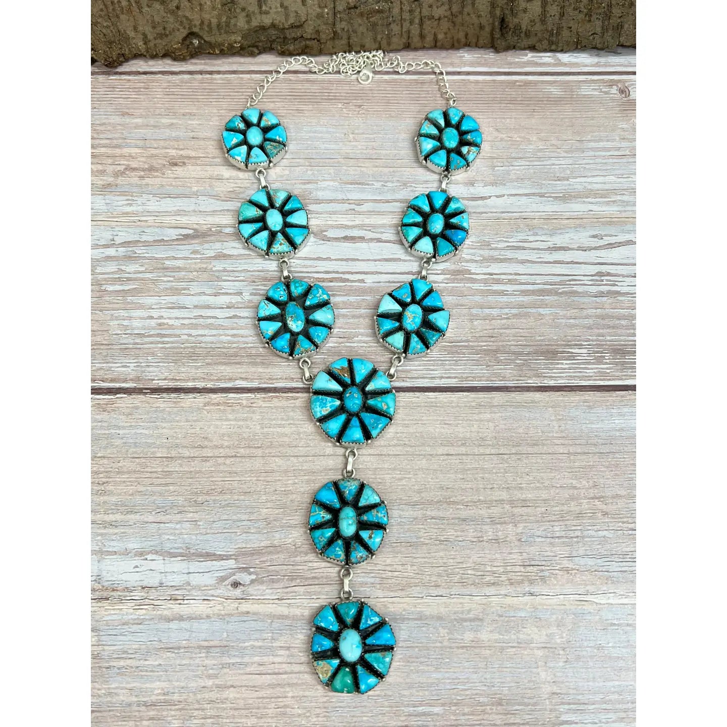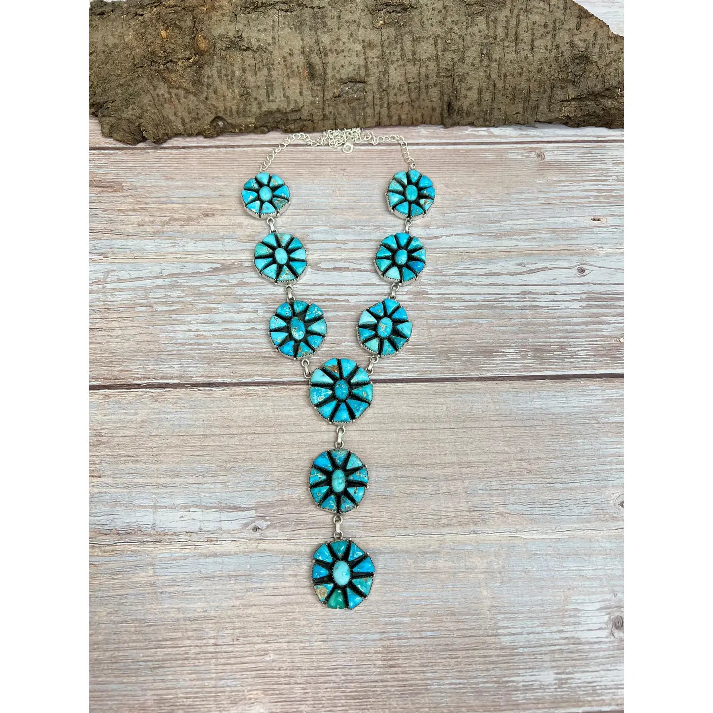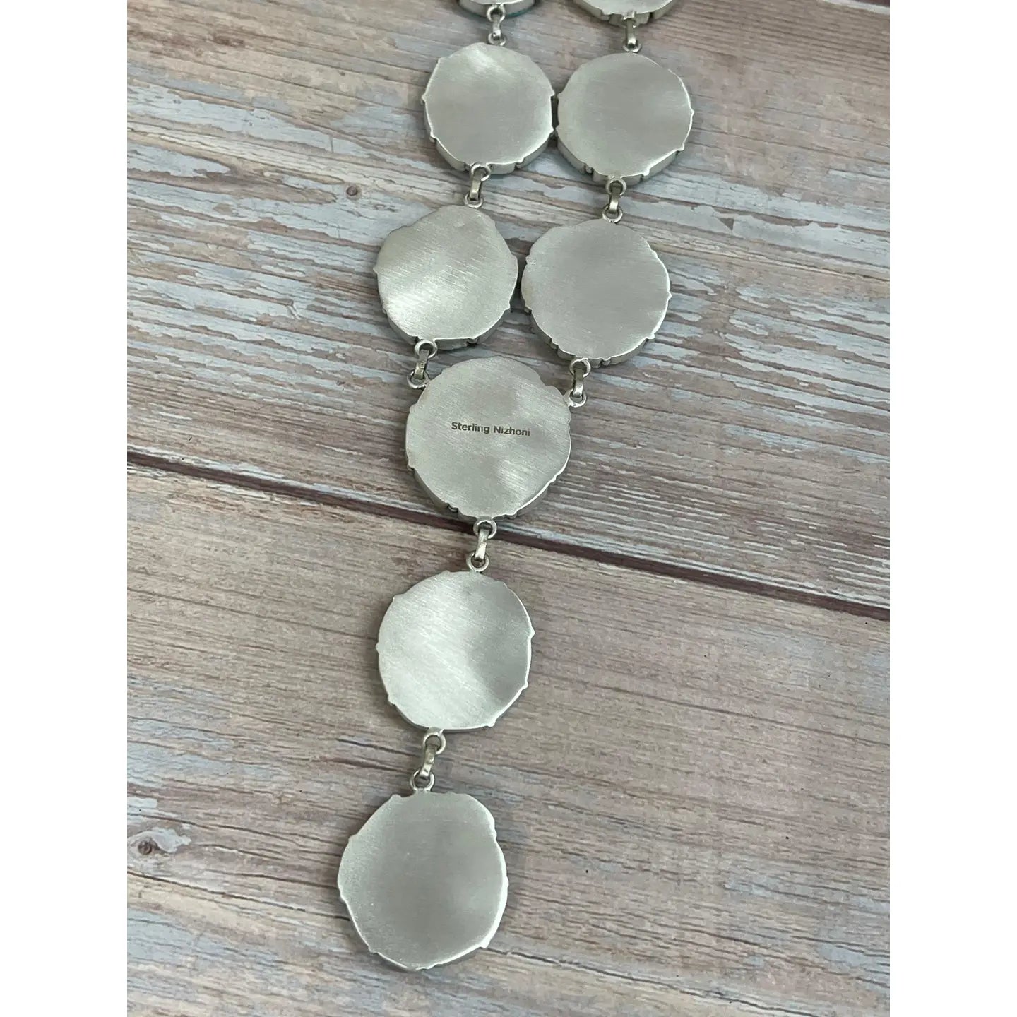 Product Description: * Category: Necklace * Stone: Blue Bird * Metal Purity: 925 Sterling Silver * Handmade: Yes * Brand: Nizhoni Traders LLC Such gorgeous craftsmanship! Sterling Silver Blue Bird Necklace measures Length 16+5" Extension, Width 1 1/8" with an additional drop of 4 7/8". Stamped with “Sterling” and signed by Nizhoni. This piece is Non-Native.