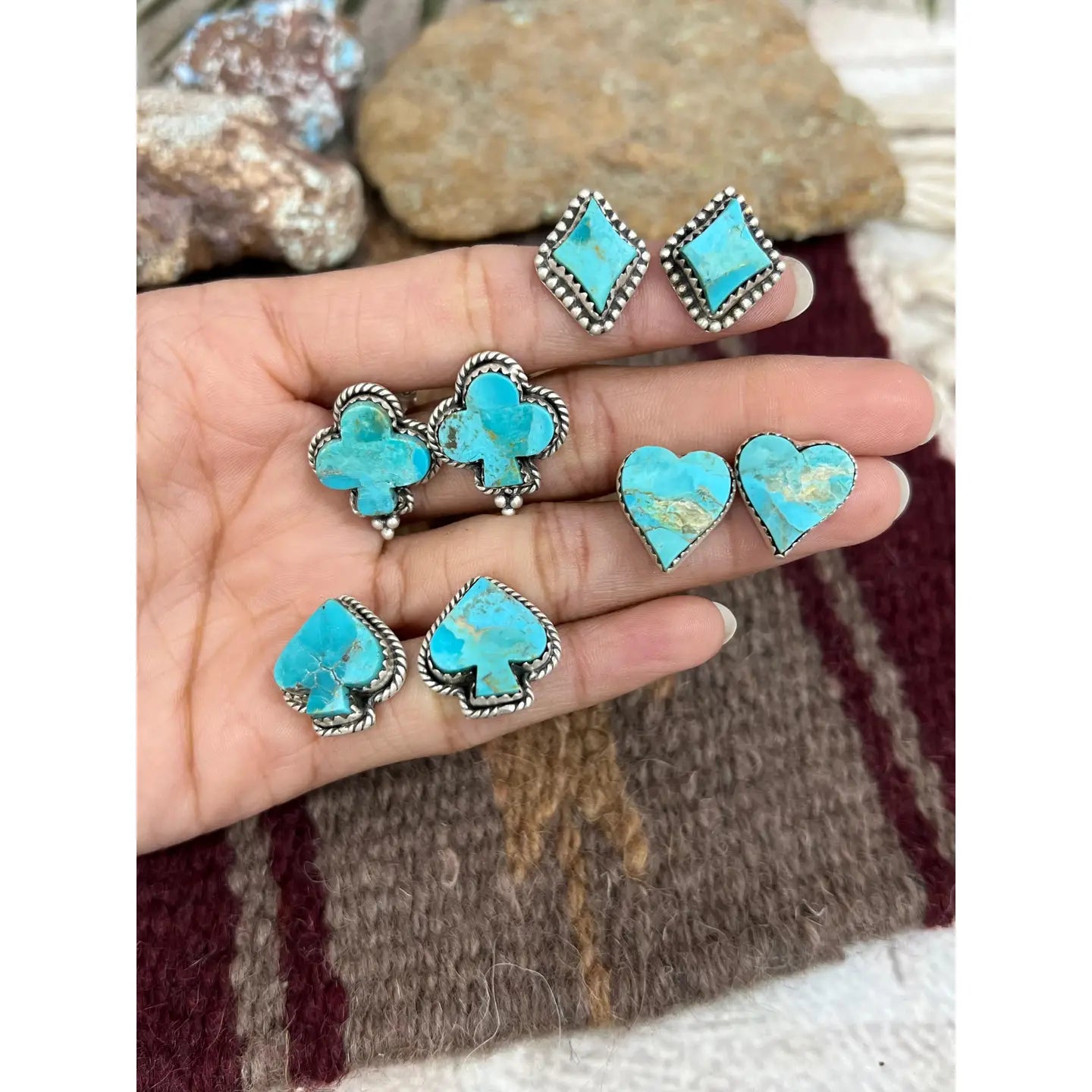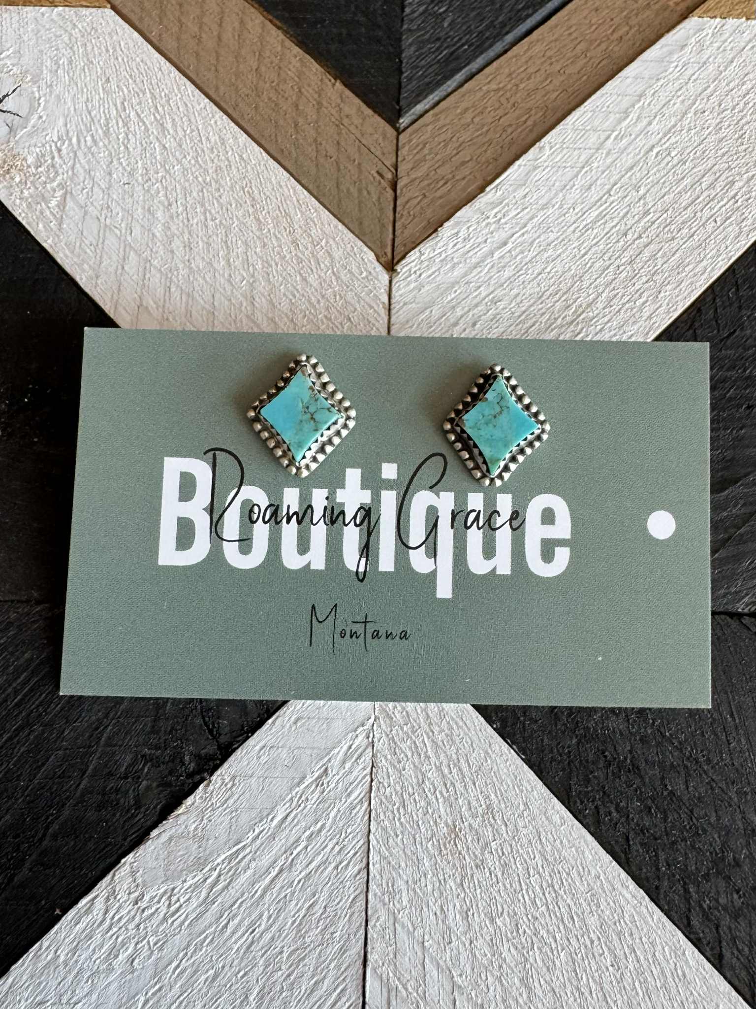 * Category: Earrings * Style Type: Studs * Main Stone: Kingman Turquoise * Handmade: Yes * Metal Purity: 925 Sterling Silver * Brand: Nizhoni Traders LLC * Each listing is for 1 pair earrings only How gorgeous are these Handmade Natural Kingman Turquoise Post Earrings!! These are lightweight and measuring 6/8" long 3/8"-6/8" wide!