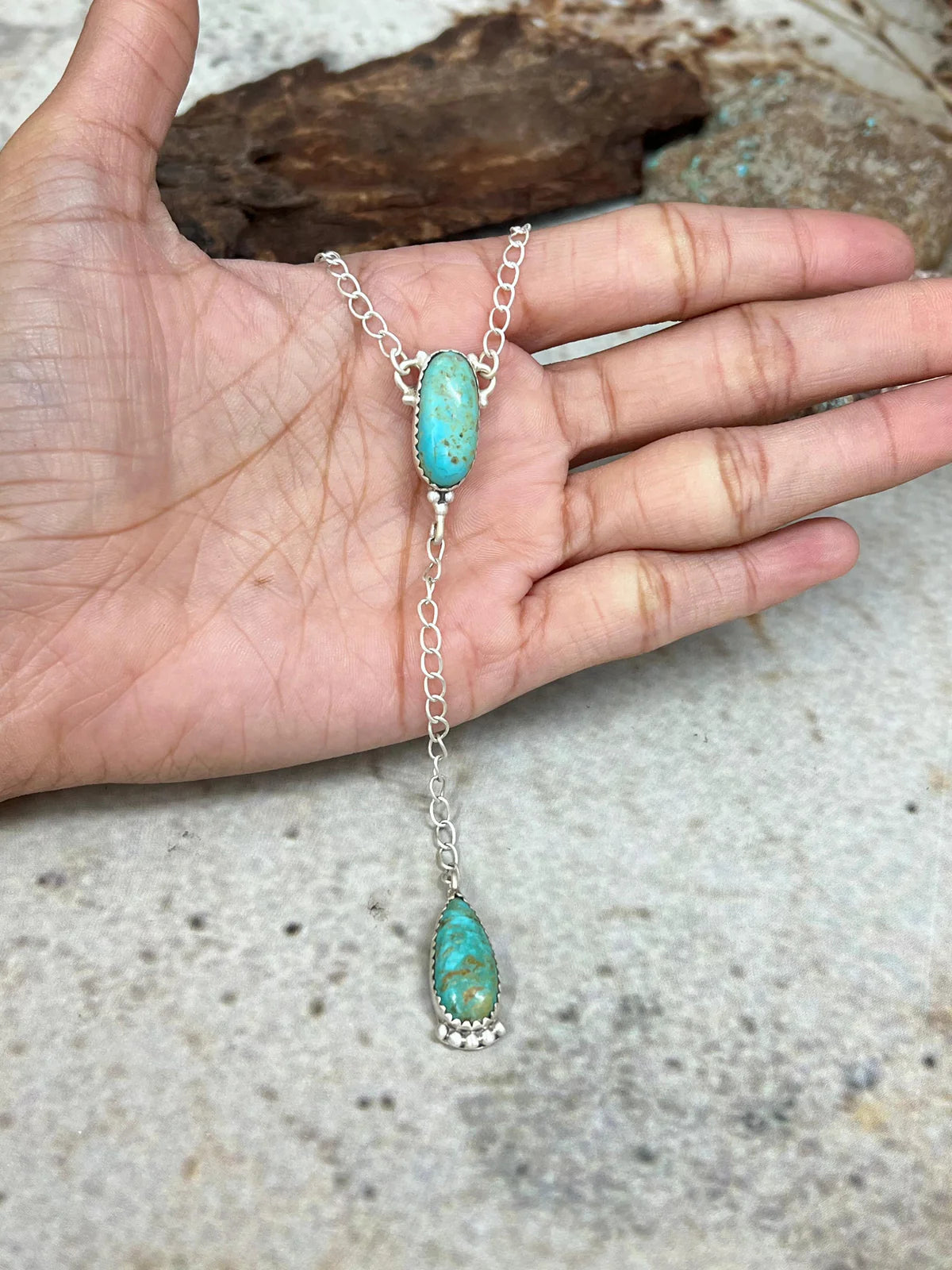 Such gorgeous craftsmanship! Sterling Silver Kingman Turquoise Necklace Measures Length 16+2" Extension, Width 3/8" with an additional drop of 4".
