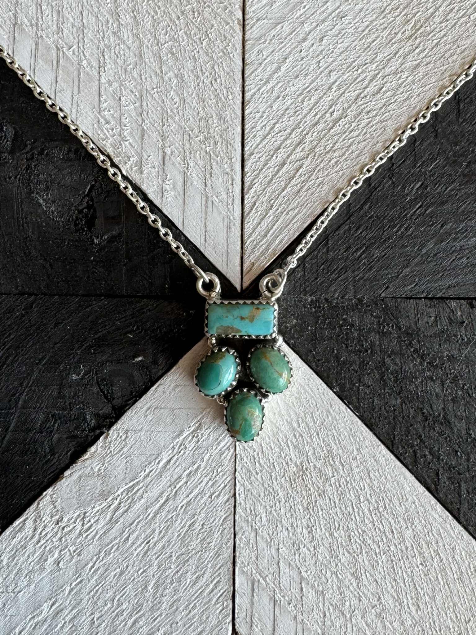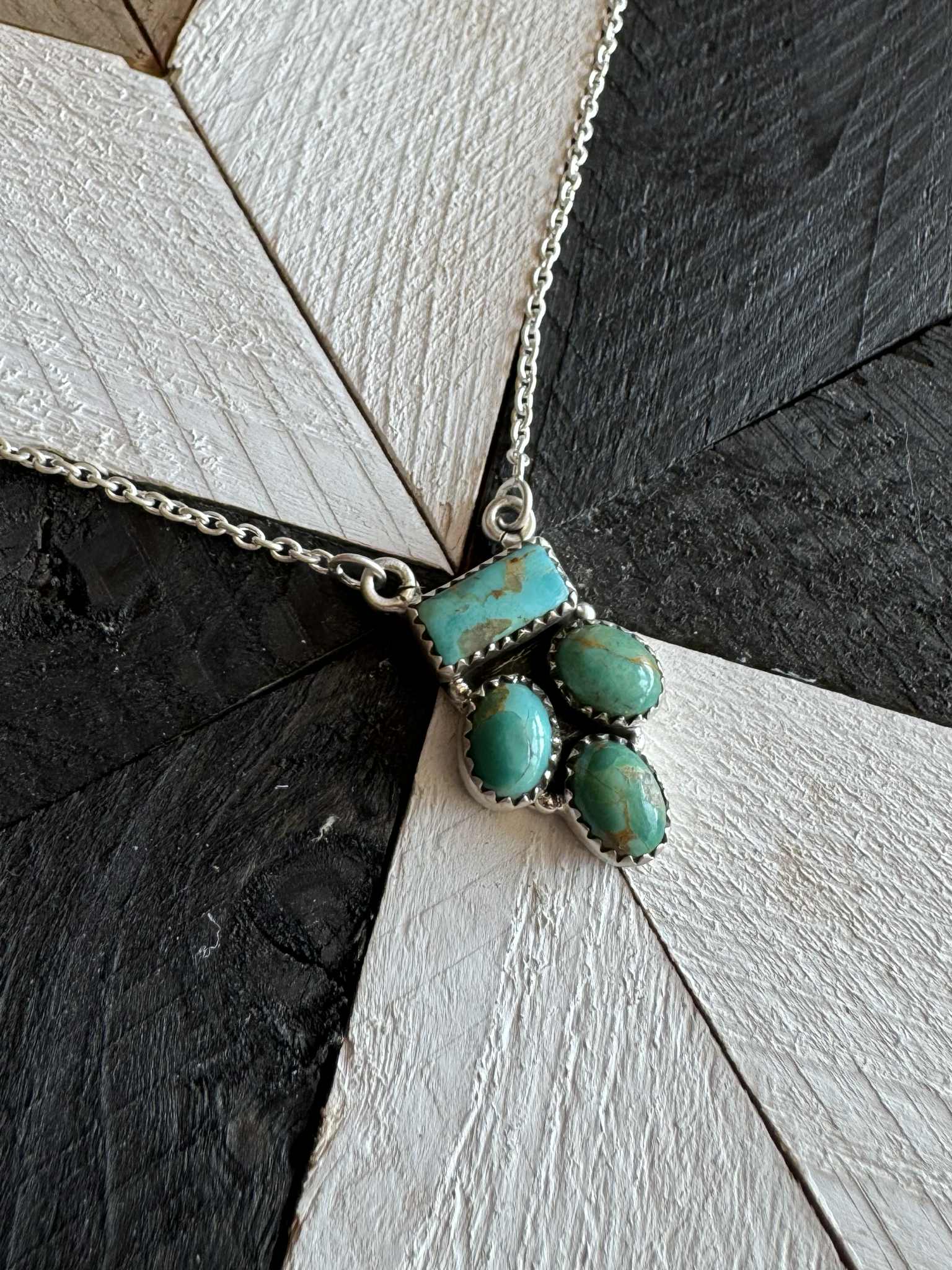Product Description: * Category: Necklace * Stone: Kingman Turquoise * Metal Purity: 925 Sterling Silver * Handmade: Yes * Brand: Nizhoni Traders LLC Such gorgeous craftsmanship! Sterling Silver Kingman Turquoise Necklace measures Length 16+2" Extension, Width 6/8" with an additional drop of 1 1/8". Stamped with “Sterling” and signed by Nizhoni.