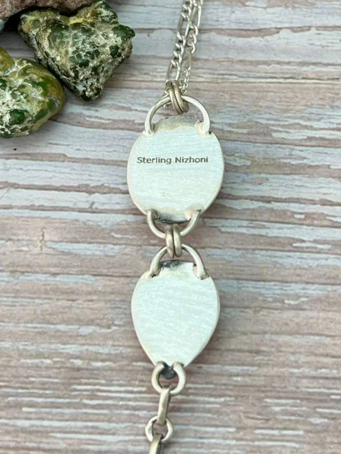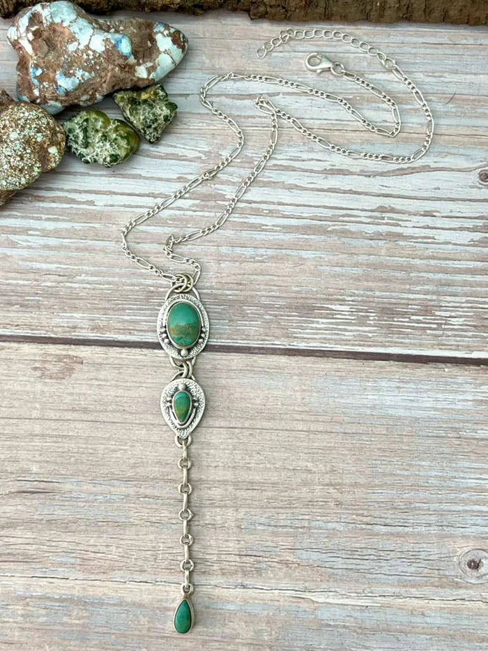 Such gorgeous craftsmanship! Sterling Silver Old Stock Royston Turquoise Necklace Measures Length 16+2" Extension, Width 6/8" with an additional 4 3/8".