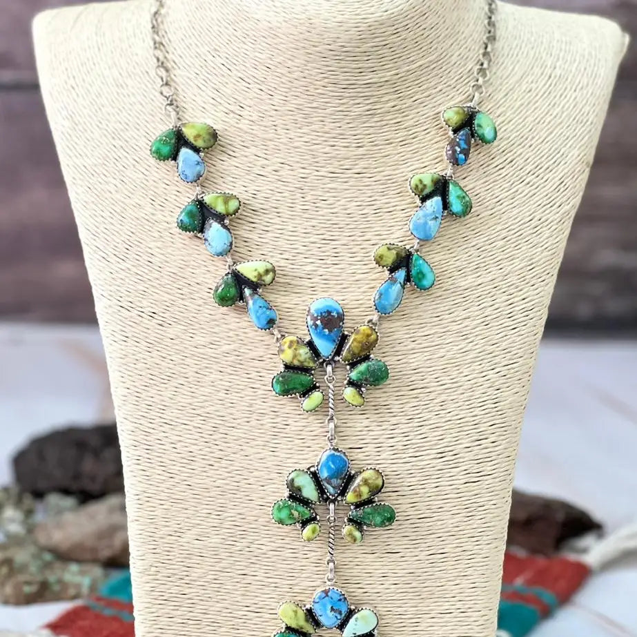 Product Description: * Category: Necklace * Main Stone: Palomino with Golden Hills and Sonoran Mountain Turquoise * Metal Purity: 925 Sterling Silver * Handmade: Yes * Each Listing is for 1 Necklace Such gorgeous craftsmanship! Sterling Silver Palomino with Golden Hills and Sonoran Mountain Turquoise Necklace Measures Length 15+7" Extension, Width 1 3/8" with an additional drop of 4 7/8" Actual colors may vary slightly due to lighting, screen display and/or the way color is seen by an individual.