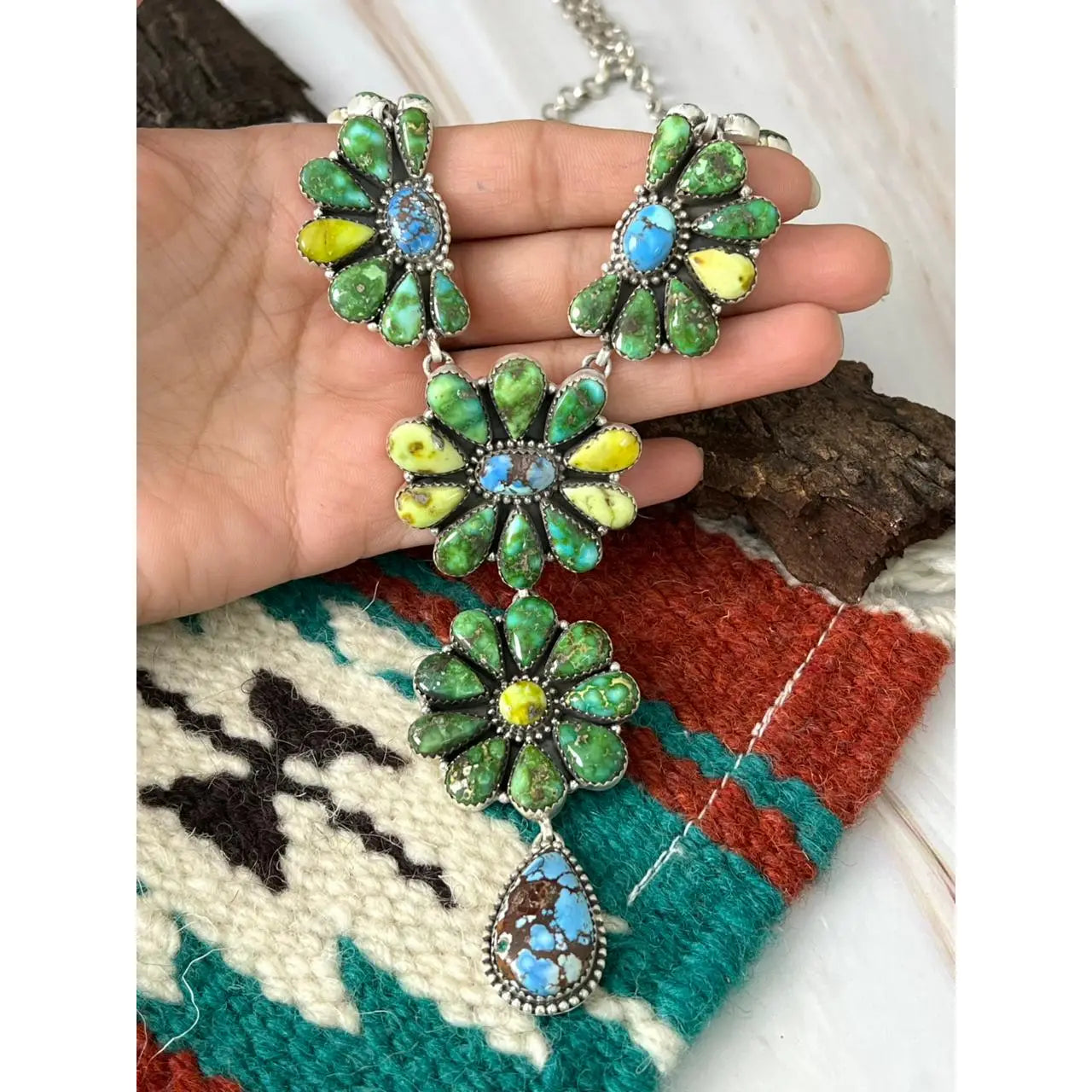 Product Description: * Category: Necklace * Main Stone: Palomino with Golden Hills and Sonoran Mountain Turquoise * Metal Purity: 925 Sterling Silver * Handmade: Yes * Each Listing is for 1 Necklace Such gorgeous craftsmanship! Sterling Silver Palomino with Golden Hills and Sonoran Mountain Turquoise Necklace Measures Length 17+6" Extension, Width 1 5/8" with an additional drop of 4 3/8" Actual colors may vary slightly due to lighting, screen display and/or the way color is seen by an individual.