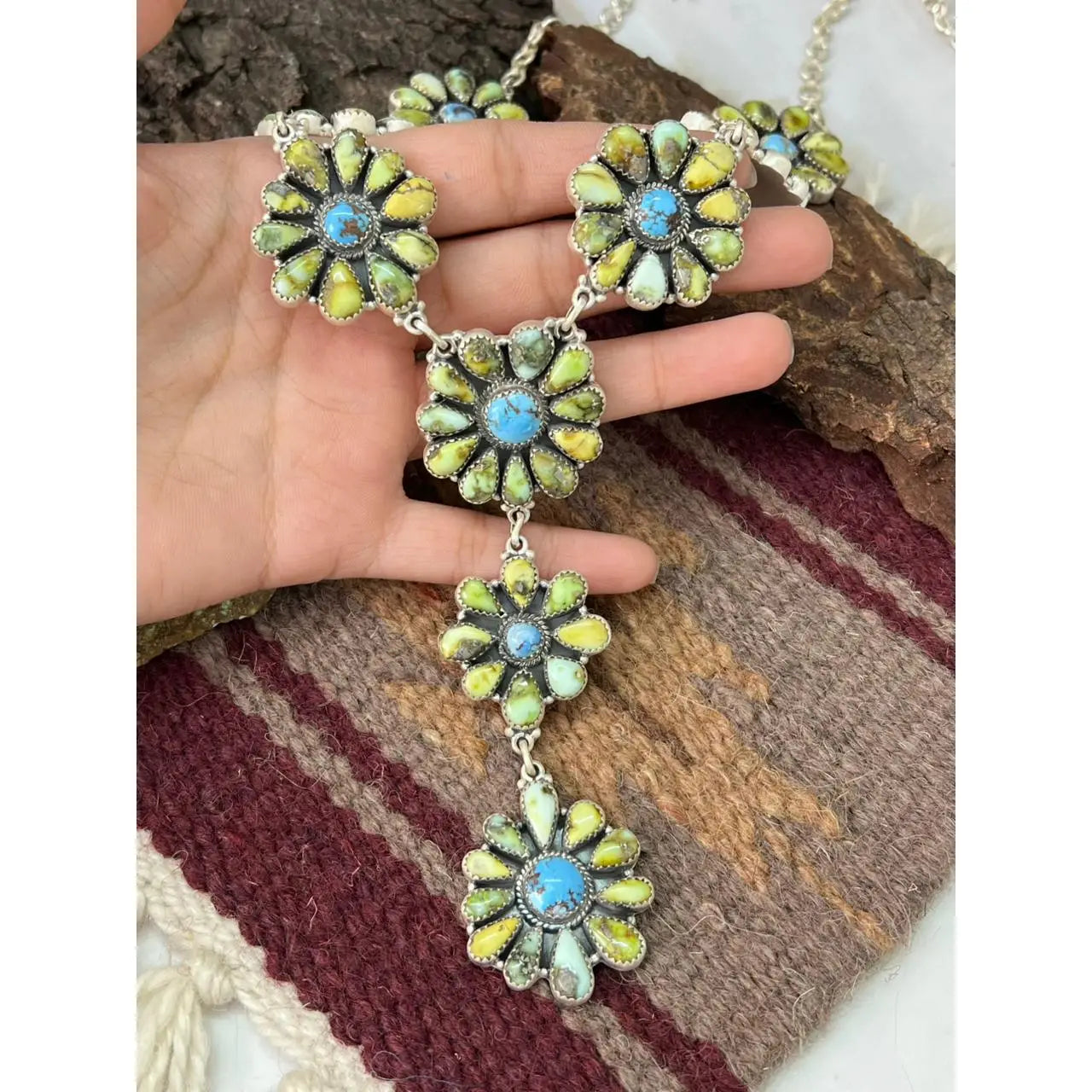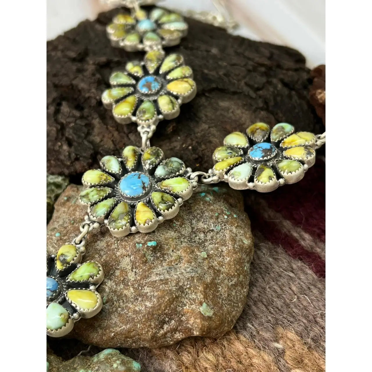 Product Description: * Category: Necklace * Main Stone: Palomino with Golden Hills Turquoise * Metal Purity: 925 Sterling Silver * Handmade: Yes * Brand: Nizhoni Traders LLC * Each Listing is for 1 Necklace Such gorgeous craftsmanship! Sterling Silver Palomino with Golden Hills Turquoise Necklace Measures Length 16+6" Extension, Width 1 1/8" with an additional drop of 5 4/8" Actual colors may vary slightly due to lighting, screen display and/or the way color is seen by an individual.