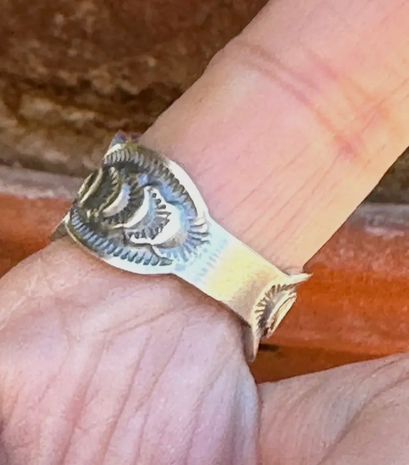 Awesome Handmade 3 Flower Cigar Band Rings. Ring is great for layering and everyday!Great ring!Signed by the artist & stamped sterling Handcrafted in the USA