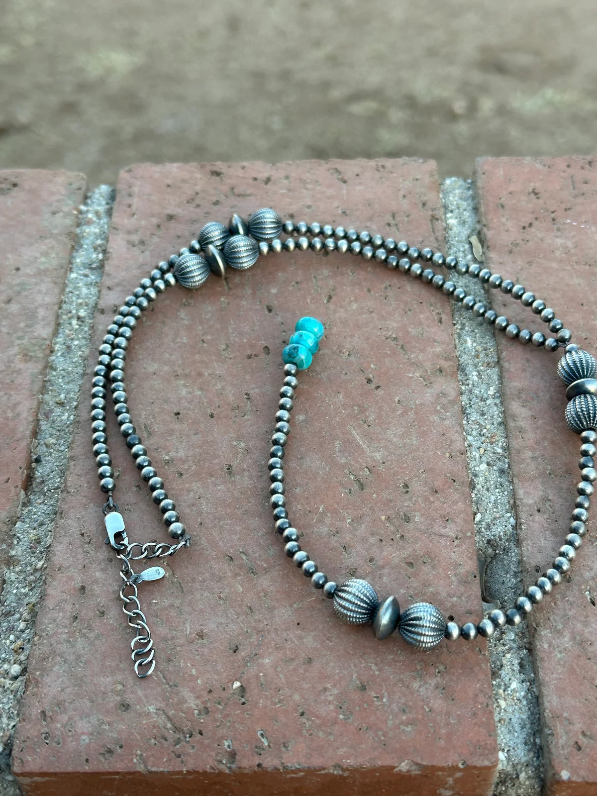 Handmade Sterling Silver Beaded Drop Lariat Necklace. Such a gorgeous piece! Necklace measures 20-22 inches long. Drop measures 8 inches long. Signed Nizhoni and stamped Sterling.