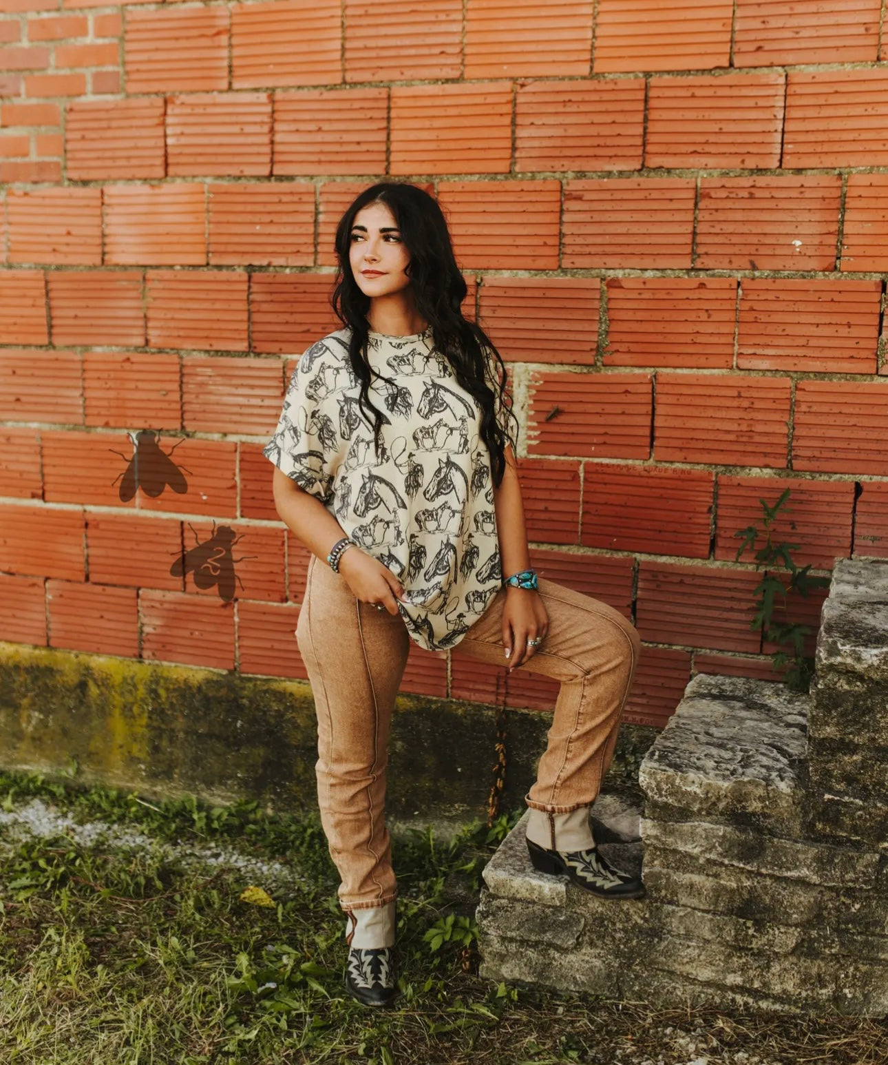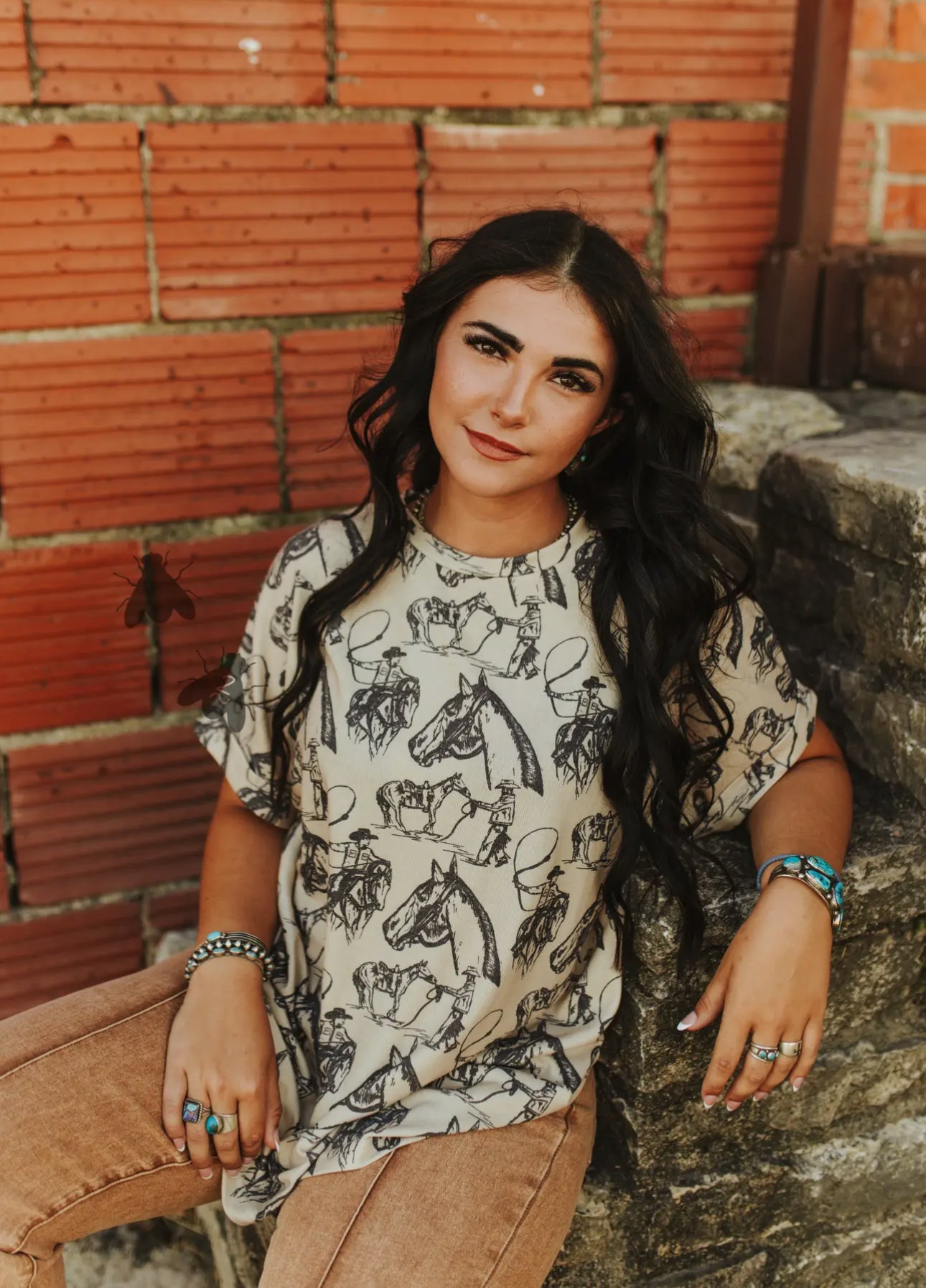 True to size with an oversized fit. Model is wearing a smal/mwdium