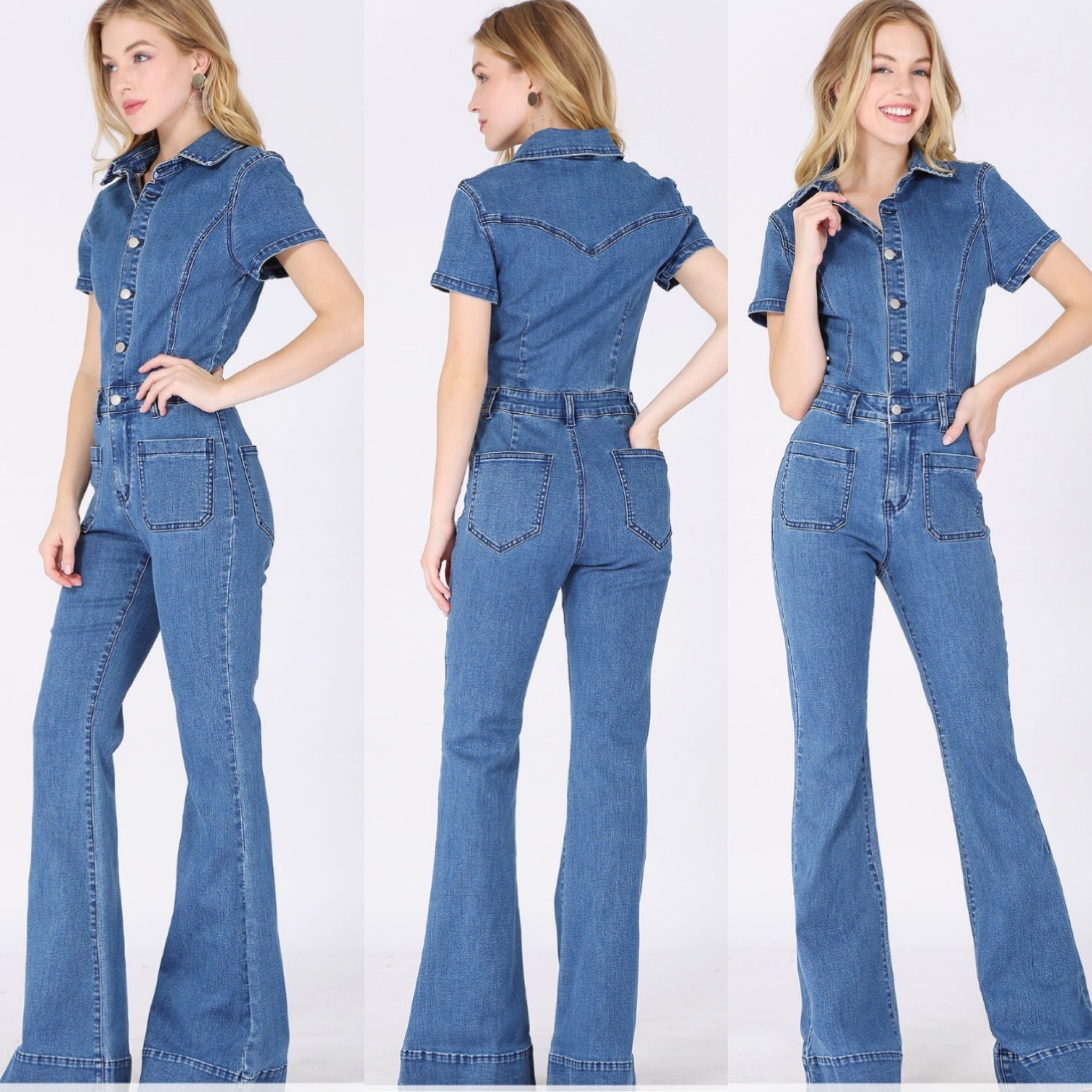 FULL LENGTH DENIM JUMPSUIT WITH FUNCTIONAL BUTTONS AND HIGH STRETCH